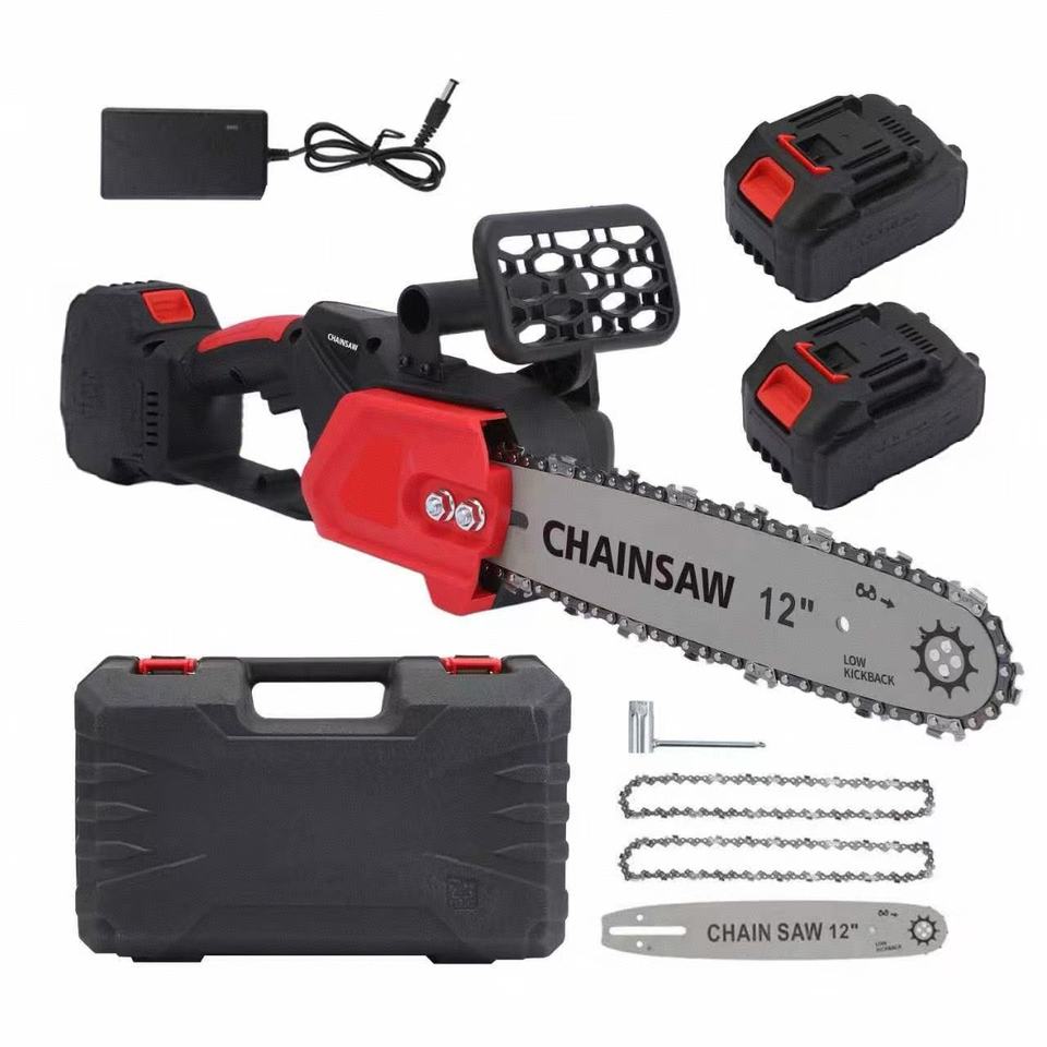เลื่อยโซ่ไฟฟ้าไร้สาย 48V ขนาด 12 นิ้ว สำหรับงานไม้ 2 โซ่ E Commence