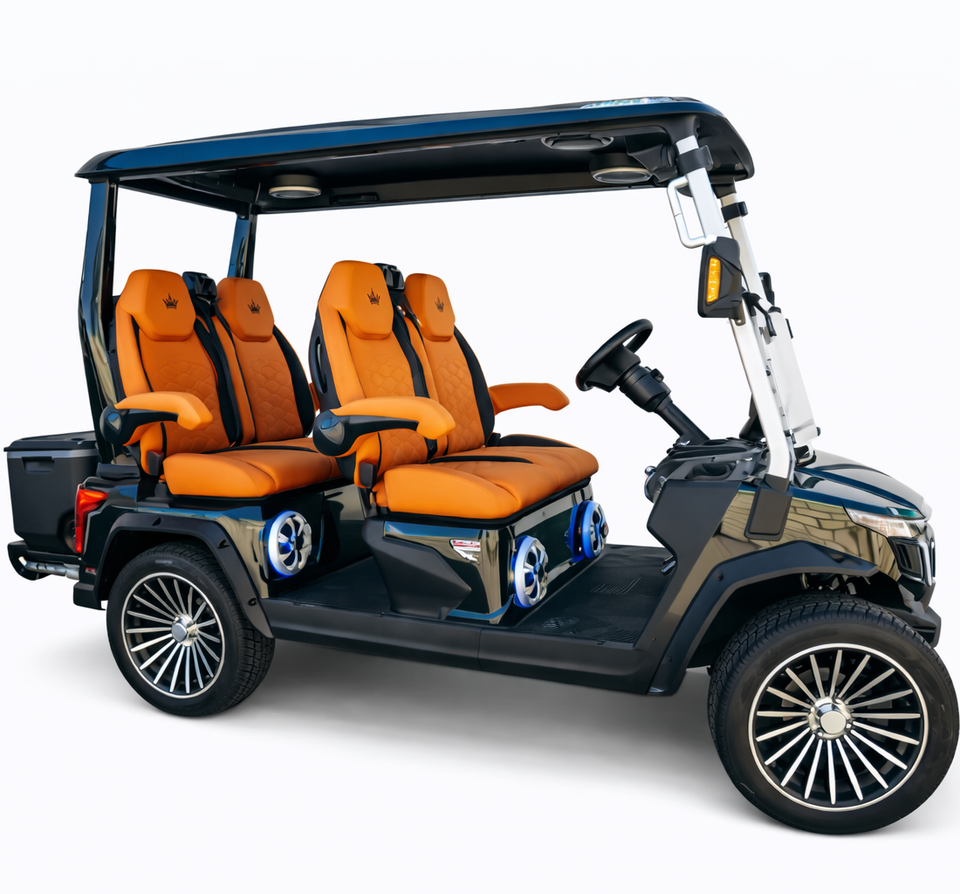 รถกอล์ฟไฟฟ้า 48V 4 ที่นั่ง รุ่น GT4 ดีไซน์ทันสมัย แบตเตอรี่ลิเธียม ระยะทางวิ่ง 50 ไมล์ สำหรับผู้โดยสาร ใช้ในพื้นที่ส่วนตัว ชุมชนส่วนตัว ลดราคา 40%