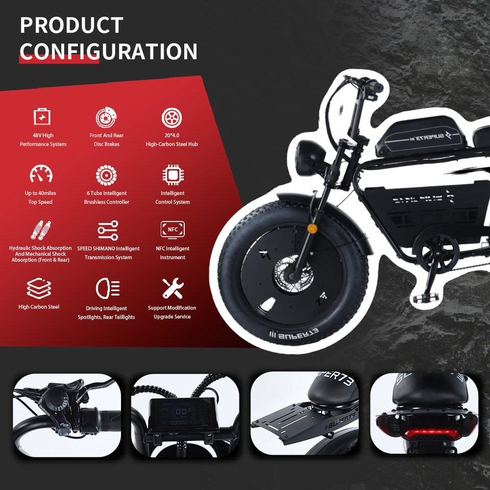 ยางมอเตอร์ไซค์ไฟฟ้าออฟโรด48V 400W แบบ46AH เรโทรสำหรับผู้ใหญ่ยางอลูมิเนียมอัลลอยแบบเต็มช่วงล่าง