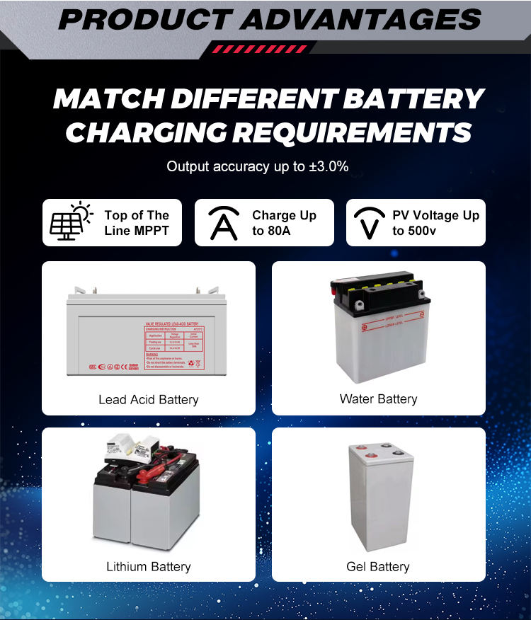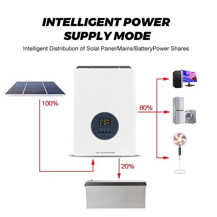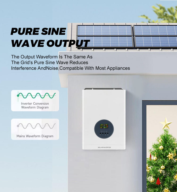 อินเวอร์เตอร์พลังงานแสงอาทิตย์แบบไฮบริด10KW 48V 5000W 6400W 8000W 120VAC เฟสเดียวคลื่นไซน์บริสุทธิ์24VDC MPPT Home American