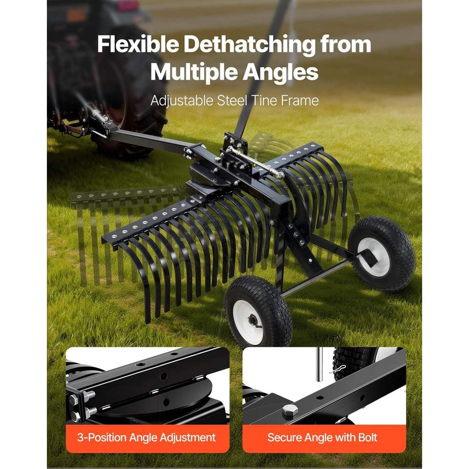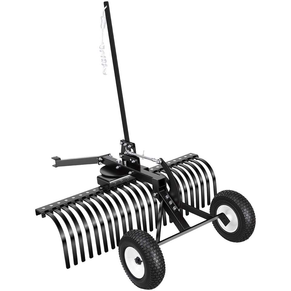 คราดจัดสวนแบบลากจูง ปรับความสูงได้ 48 นิ้ว พร้อมซี่คราดเหล็กแข็งแรงทนทาน สำหรับรถเอทีวี เครื่องตัดหญ้า รถแทรกเตอร์ คราดหญ้า 24 ซี่
