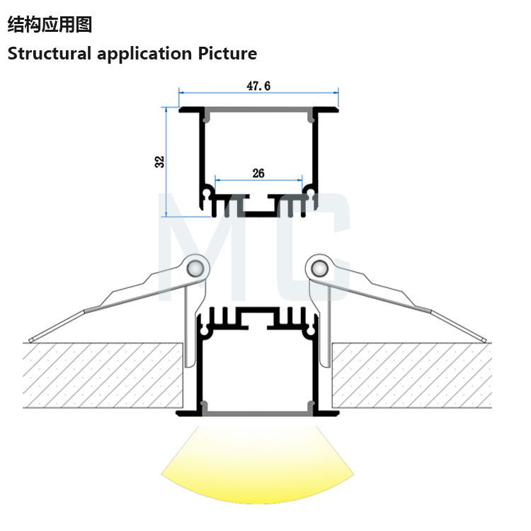 ไฟแอลอีดีแบบเส้น 48 มม. พร้อมรางอลูมิเนียมสำหรับฝ้าเพดาน แบบปีกคู่สำหรับแถบไฟแอลอีดีแบบแข็ง
