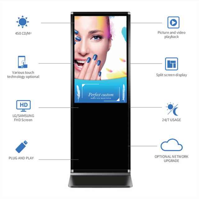 จอแสดงผลดิจิทัลอัจฉริยะแบบตั้งพื้นในอาคารขนาด 49 นิ้ว ความสว่าง 300 นิต สำหรับโฆษณาเชิงพาณิชย์แบบ HD