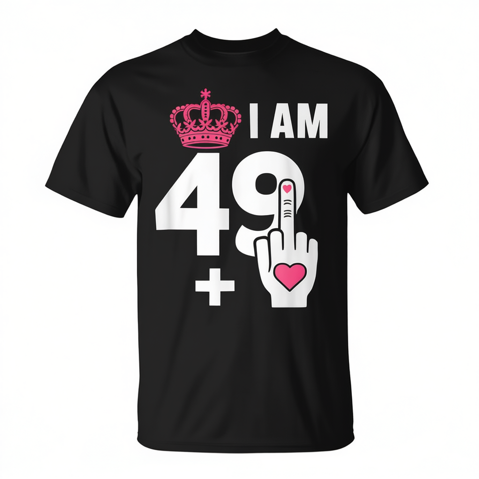 เสื้อยืดวันเกิดครบรอบ 49 ปี พร้อมลาย "49 พลัส 1 นิ้วกลาง" ออกแบบได้ตามต้องการสำหรับผู้ที่มีอายุมากกว่า 49 ปี