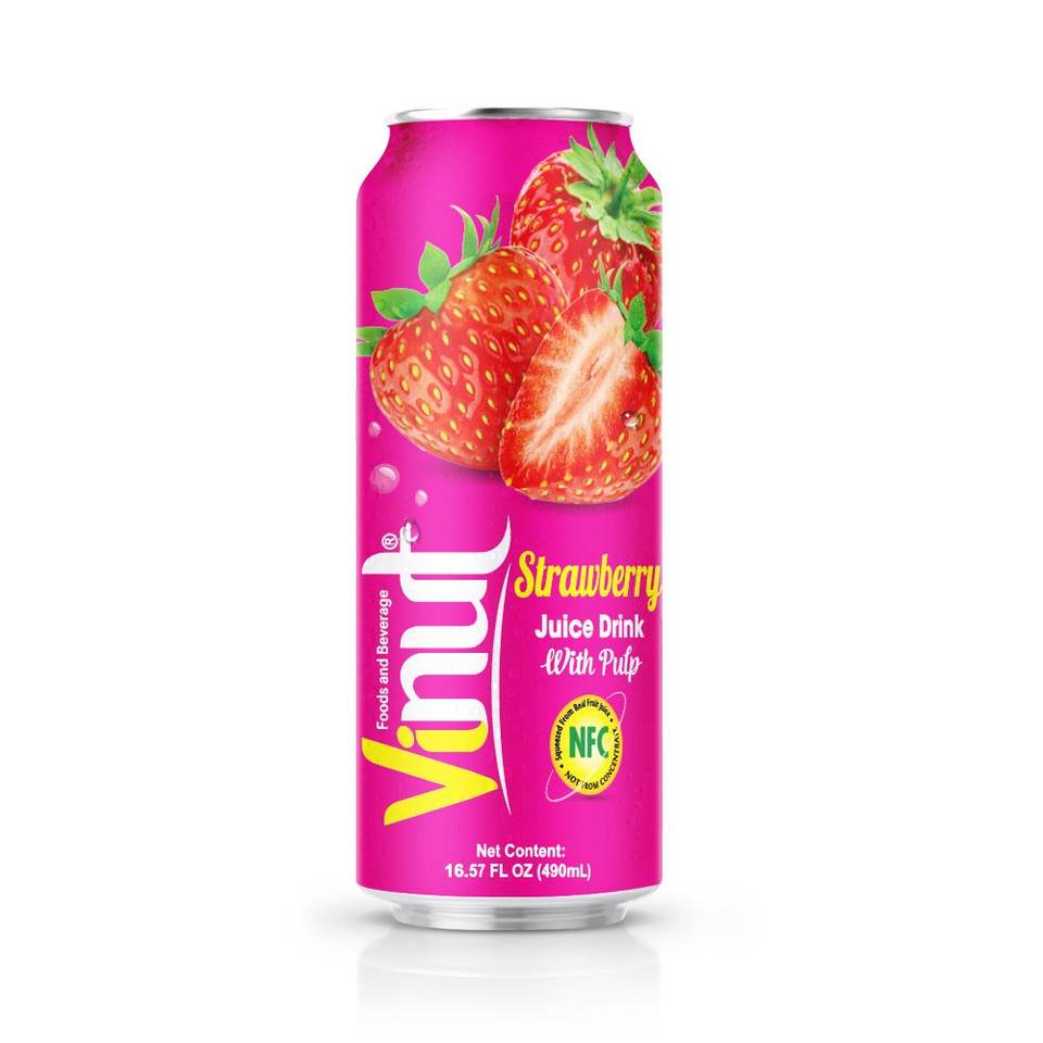 เครื่องดื่มน้ำผลไม้สตรอเบอร์รี่490มล. พร้อมเยื่อกระดาษ BRC GMP HACCP Kosher halal fssc