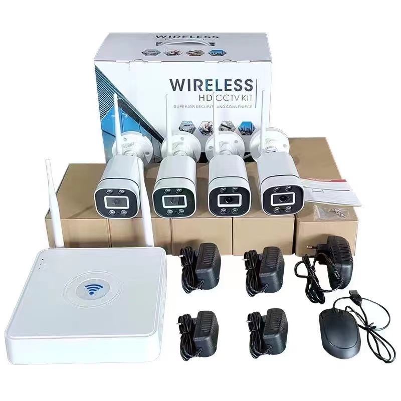 4CH NVR ชุด WIFI 3MP กล้องวงจรปิด IP กระสุนสีเต็มรูปแบบกล้องเสียงอินเตอร์คอมระบบ NVR ชุดไร้สาย