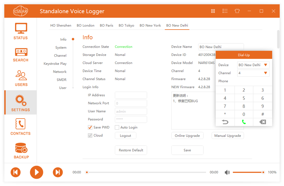 เครื่องบันทึกเสียงแบบสแตนด์อโลน 4 ช่องสัญญาณ พร้อมระบบบันทึกเสียงและแรงดันไฟฟ้า, เครื่องบันทึกเสียงโทรศัพท์ 4 ช่องสัญญาณ ปรับแต่งได้ พร้อมการ์ด SD และ SDK/API