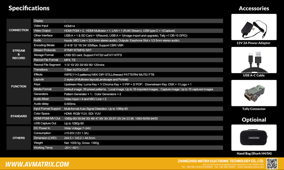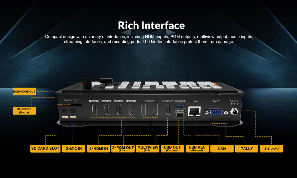 HDMI PGM*2; HDMI Multiview * 1; USB type-C *1 ;LAN* 1Video Out
