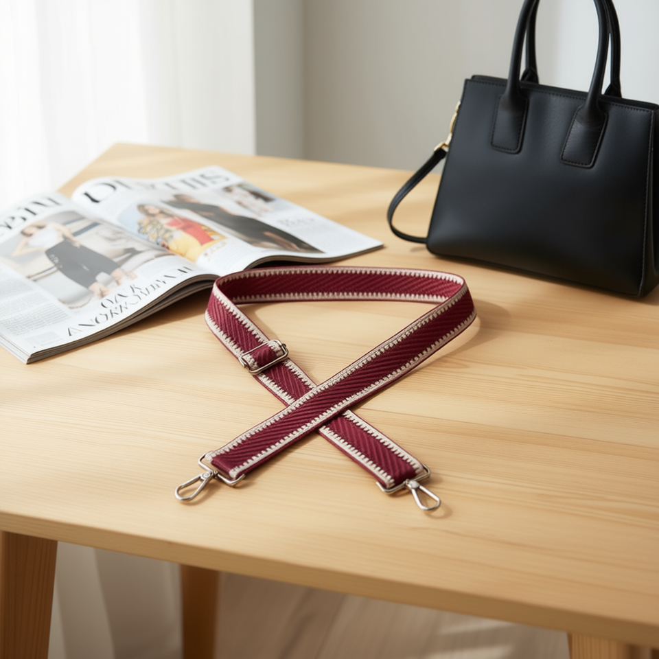 สายรัดกระเป๋าสีน้ำตาลแดงขนาด 4 ซม. พร้อมหัวเข็มขัดโลหะและตะขอ