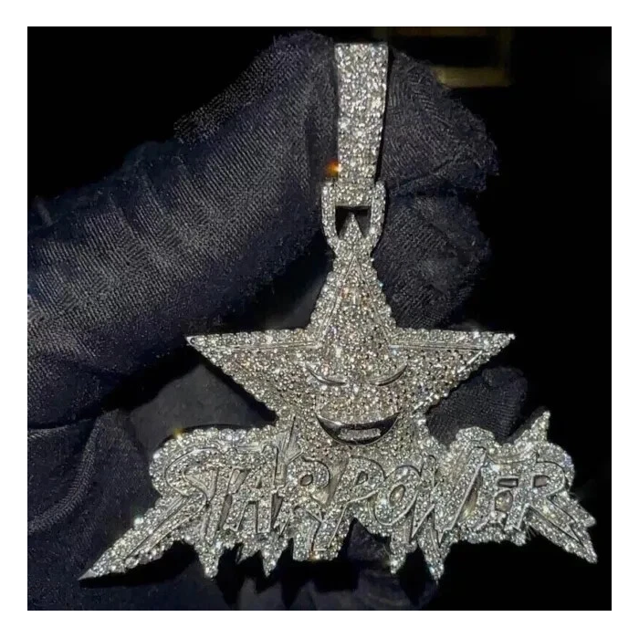 จี้เพชรโมอิสซาไนต์แท้ทรงกลม 4 กะรัต ดีไซน์สั่งทำพิเศษสำหรับผู้ชาย ชุบทองคำขาว 14K เหมาะสำหรับการใส่ซ้อนและเพิ่มความหรูหรา