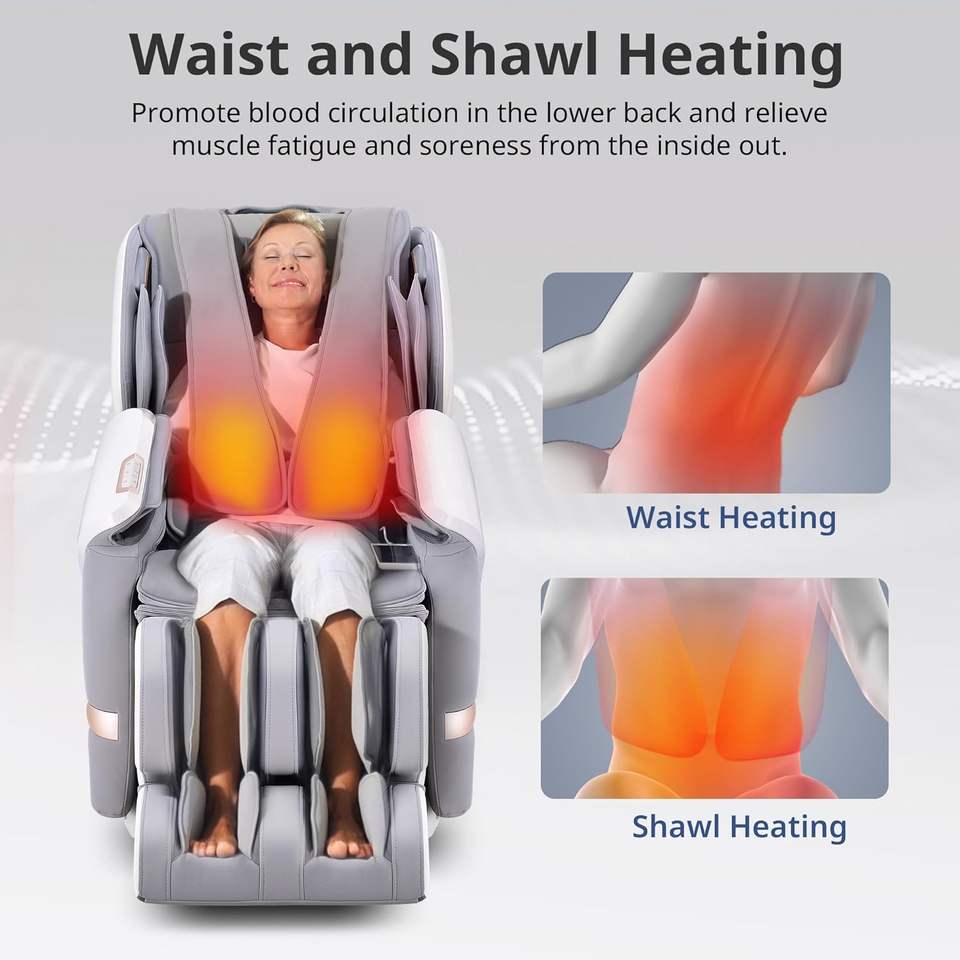 เก้าอี้นวด 4D ระบบคู่ 4D+2D นวดทั่วร่างกาย พร้อมระบบทำความร้อนบริเวณเอวและผ้าคลุมไหล่ ราง SL แบบยาวพิเศษ เครื่องนวดเท้าและน่อง ระบบซิงค์เพลงพร้อมระบบ Hi-Fi