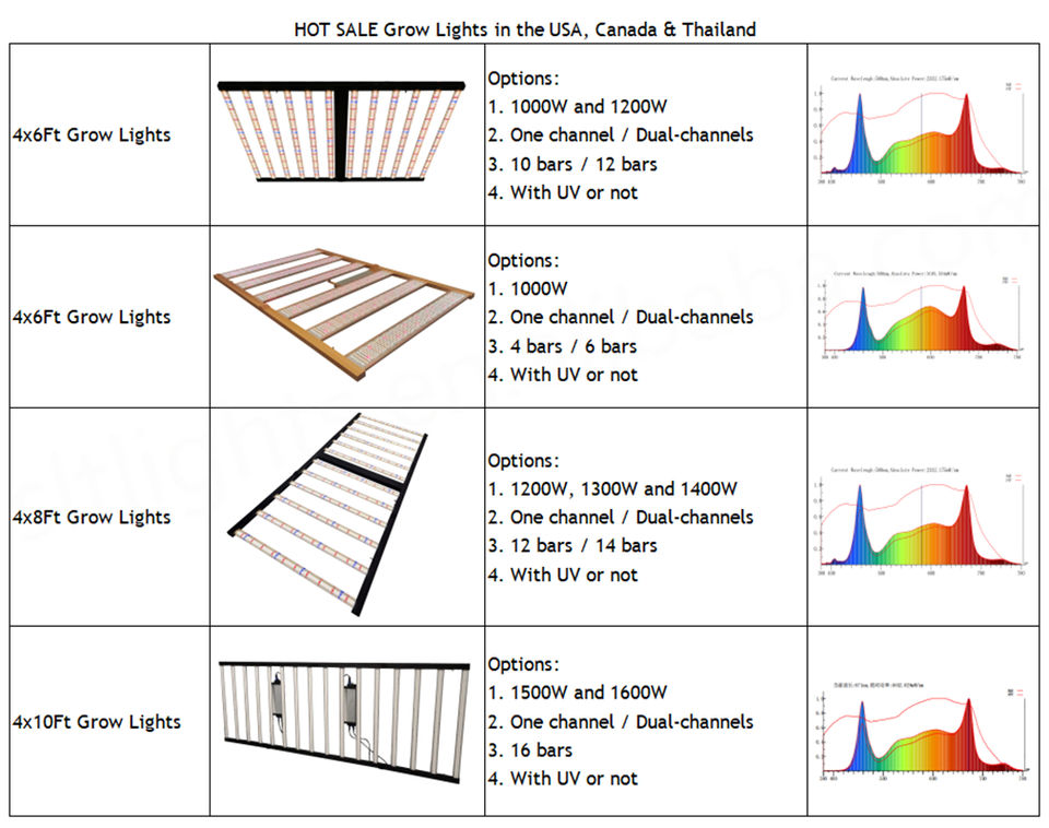 ตัวเลือกพลังงาน:ไฟปลูกพืช LED 1800วัตต์600 / 720 / 800 / 1000 / 1200 / 1300 / 1500