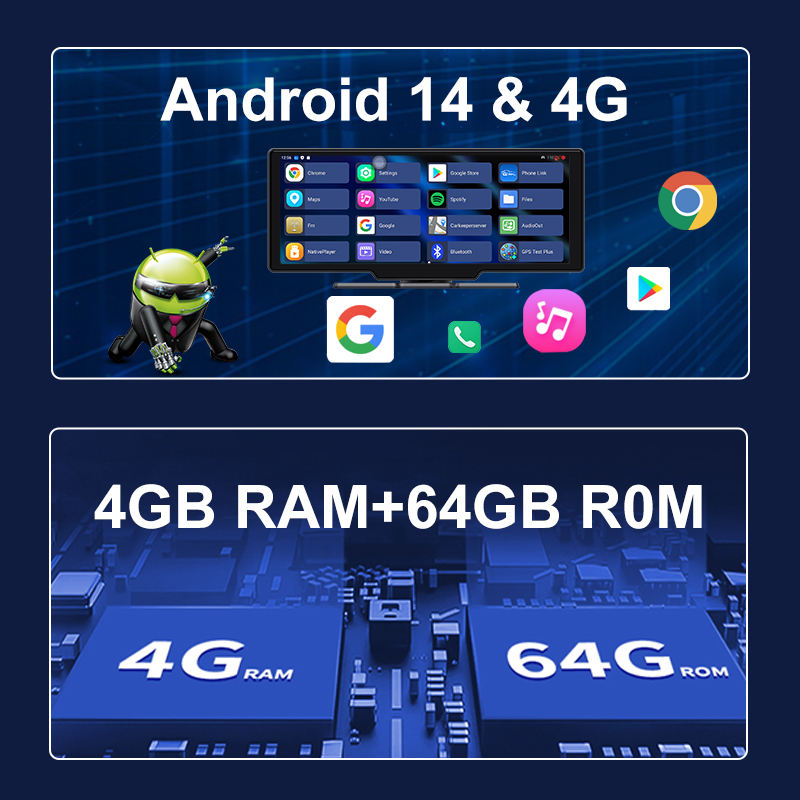 กล่องดำรถยนต์ขนาด10.26นิ้วเครื่องบันทึก Android14ไดรฟ์4G พร้อมแอป GPS แบบเรียลไทม์สตรีมสด ADAS Dash CAM, 4 + 64G กล้องติดรถยนต์