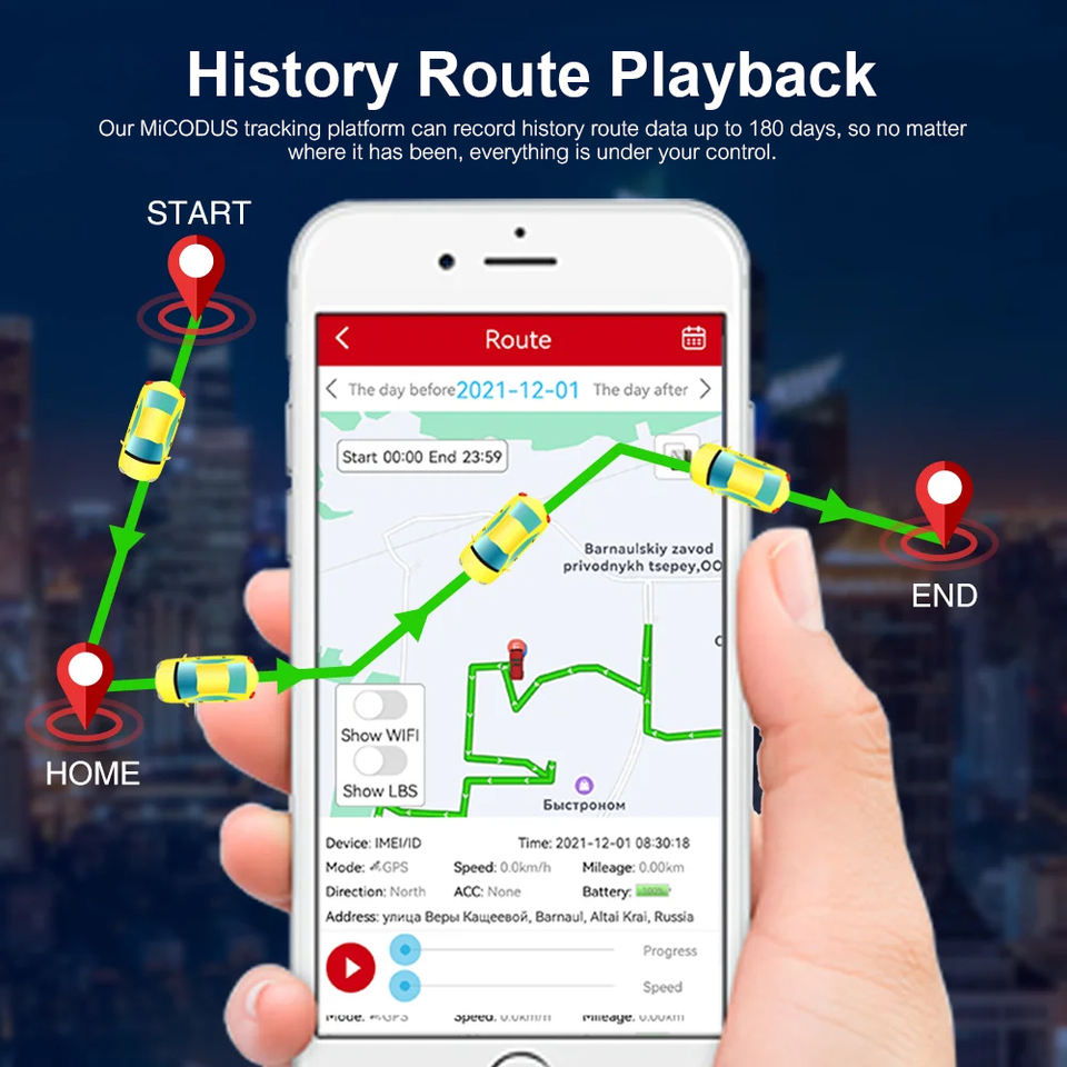 ACC Detection, Geofence, -คำเตือนความเร็ว, กันน้ำ, ไอพีคู่และล็อคอิพี, เส้นทางประวัติศาสตร์, การติดตามแบบเรียลไทม์