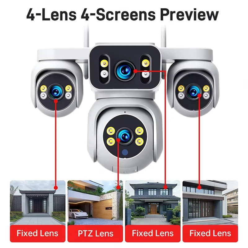 กล้องวงจรปิด 4G IP PTZ พลังงานแสงอาทิตย์ 4 เลนส์ ระบบกล้องรักษาความปลอดภัยภายนอกอาคาร CMOS หมุน-เอียง รองรับซิมการ์ด กล้องพลังงานแสงอาทิตย์ AOV