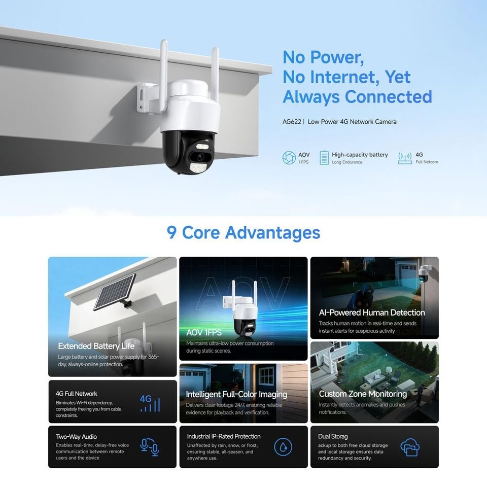 กล้องวงจรปิด PTZ ประหยัดพลังงาน 4G รุ่น AG622