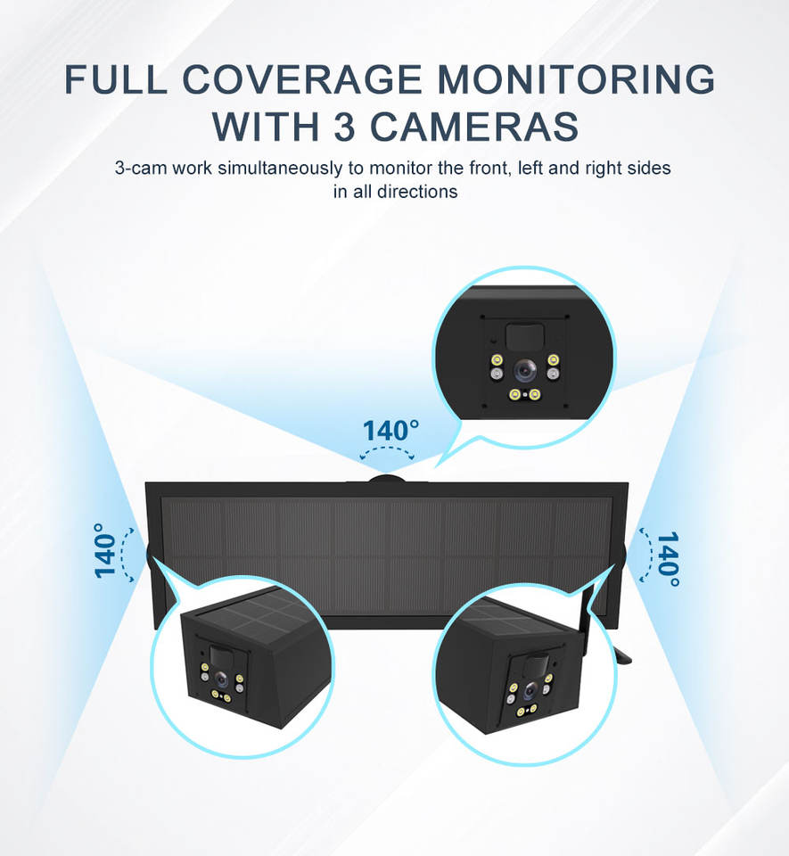 กล้องวงจรปิดกลางแจ้ง 4G พลังงานแสงอาทิตย์ แบตเตอรี่ 26000mAh 3 เลนส์ พร้อมระบบตรวจจับความเคลื่อนไหว