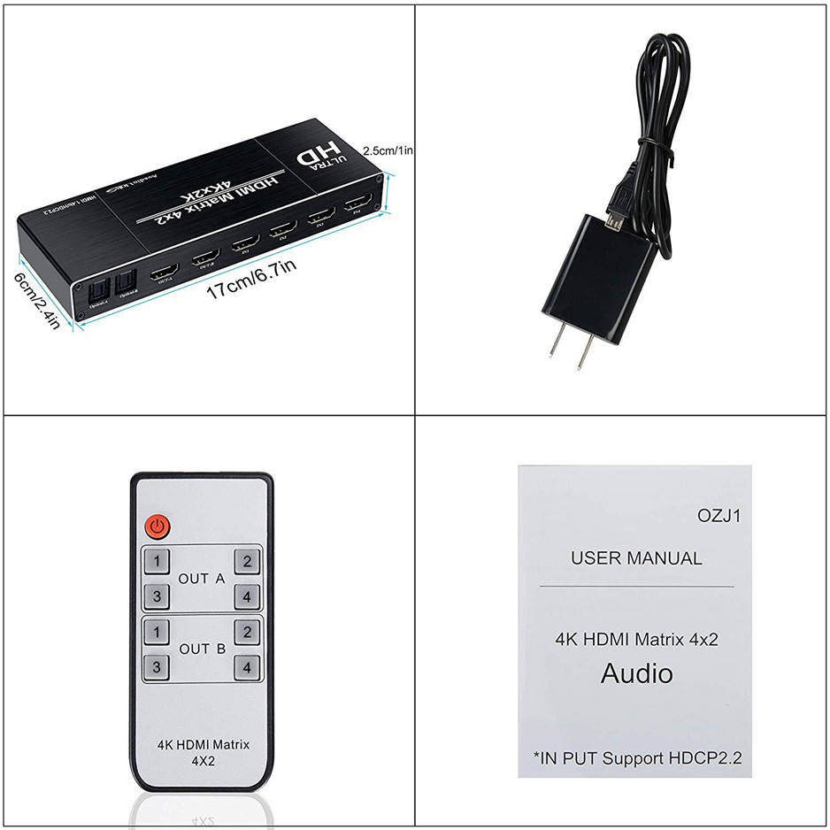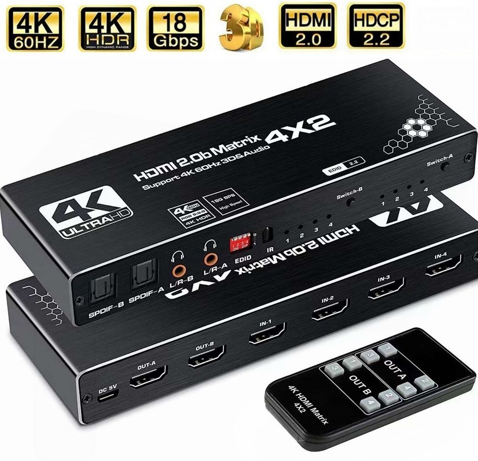 เมทริกซ์ HDMI 4x2 รองรับ EDID 4K 60Hz พร้อมรีโมทคอนโทรล รองรับ HDCP 2.2 แยกสัญญาณภาพและเสียง HDMI 4x2 แบบ Spdif 4K แยกเสียง HDMI คู่
