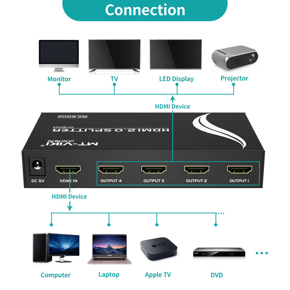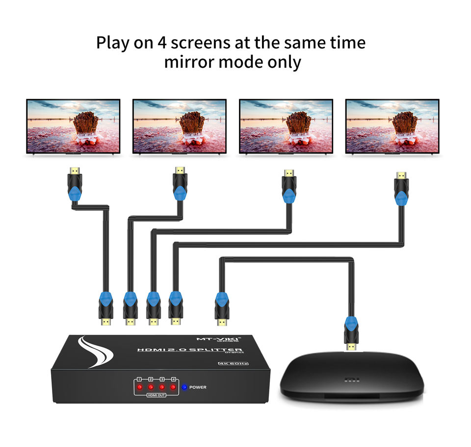 4K 60Hz HDMI splitter 1 ใน 4 ออก, MT-VIKI 1x4 1 คอมพิวเตอร์ 4 จอภาพ + อะแดปเตอร์ไฟ HDMI splitter 1x4