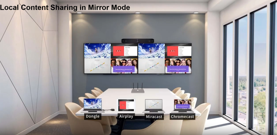 ระบบการนำเสนอไร้สายหน้าจอคู่4K byom 4K60Hz Ultra HD Google Chromecast AirPlay สลับ Miracast สำหรับการประชุม
