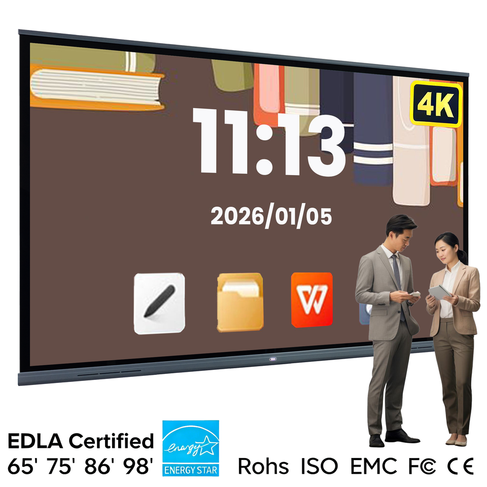 กระดานไวท์บอร์ดดิจิทัลอัจฉริยะ 4K แบบอินเทอร์แอคทีฟ หน้าจอสัมผัส 40 จุด สำหรับการสอนในสำนักงาน แบบออลอินวัน