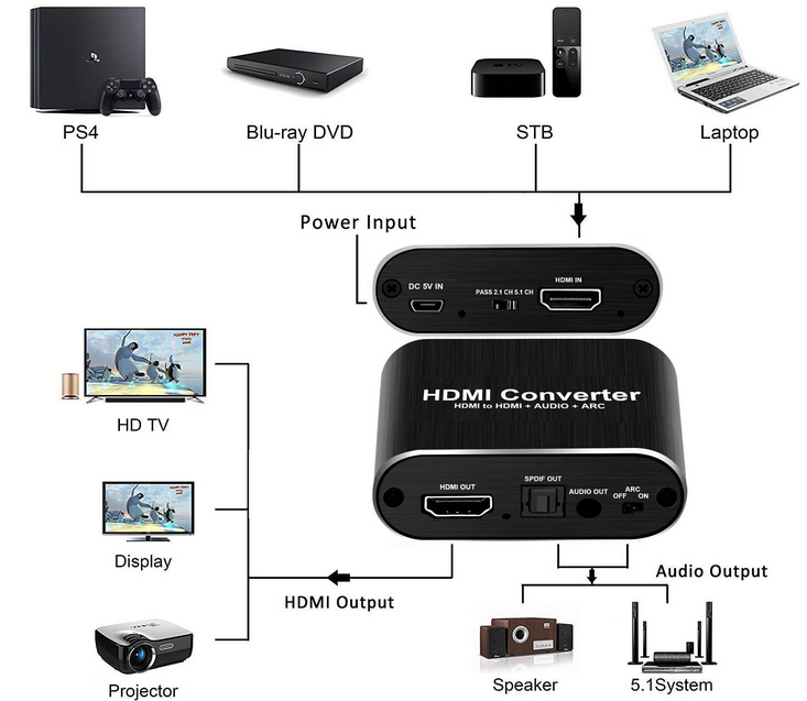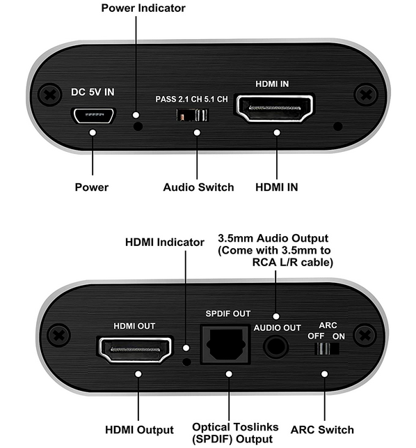 อุปกรณ์แปลงสัญญาณเสียงจาก4K HDMIเป็นHDMI + Optical Toslink SPDIF + ช่องเสียบAUX 3.5มม. ตัวแปลงสัญญาณเสียงสเตอริโอออกHDMI