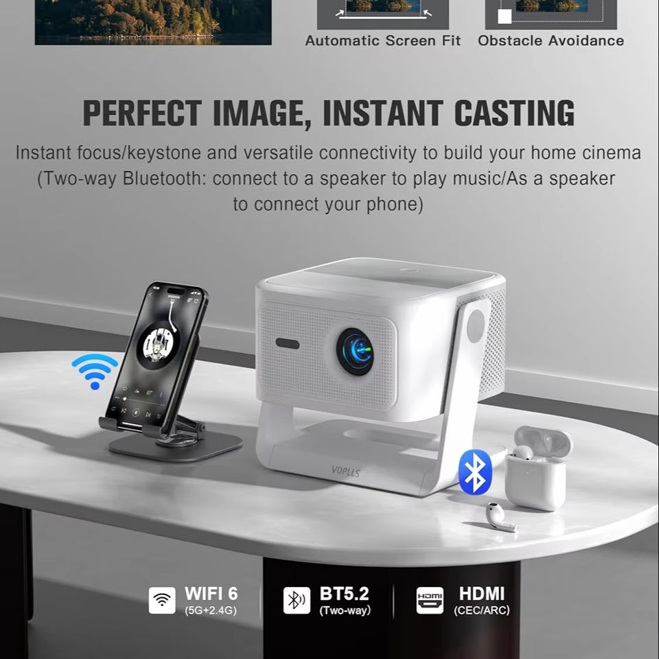 โปรเจคเตอร์อัจฉริยะ 4K พร้อมอินเตอร์เน็ตไร้สายและบลูทูธ, โปรเจคเตอร์กลางแจ้ง VOPLLS พร้อมระบบดอลบี้/โฟกัสอัตโนมัติ, โทรศัพท์ดูหนังแบบพกพา เล่นเกมไร้สาย