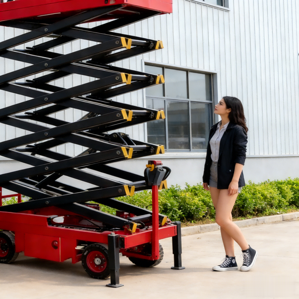 ลิฟท์ยกของไฟฟ้า 4M 6M สำหรับงานก่อสร้าง แท่นยกทำงานบนที่สูง โครงสร้างโลหะใหม่ สำหรับโรงแรมและยางรถยนต์