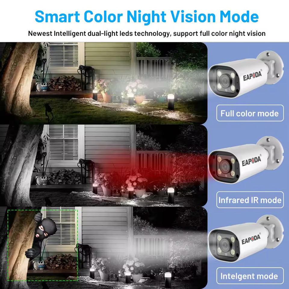 Built-in ไซเรน, ในตอนกลางคืน, 2-Way Audio, การจดจำใบหน้า, มนุษย์การติดตามการเคลื่อนไหว, การตรวจจับการเคลื่อนไหว, กันน้ำ / ฝนและแดดคุณสมบัติพิเศษ