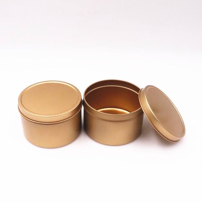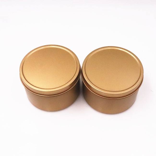 กล่องดีบุกใส่เทียนสีทอง4ออนซ์พร้อมสกรูทองแดงสำหรับใส่เทียนใส่ครีมน้ำมันใส่ผมสีทอง