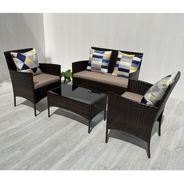 ชุดเฟอร์นิเจอร์หวายหวายกลางแจ้ง4ชิ้นทันสมัย4P00017สำหรับสวนโซฟาระเบียงวิลล่าและห้องนั่งเล่นของโรงแรม