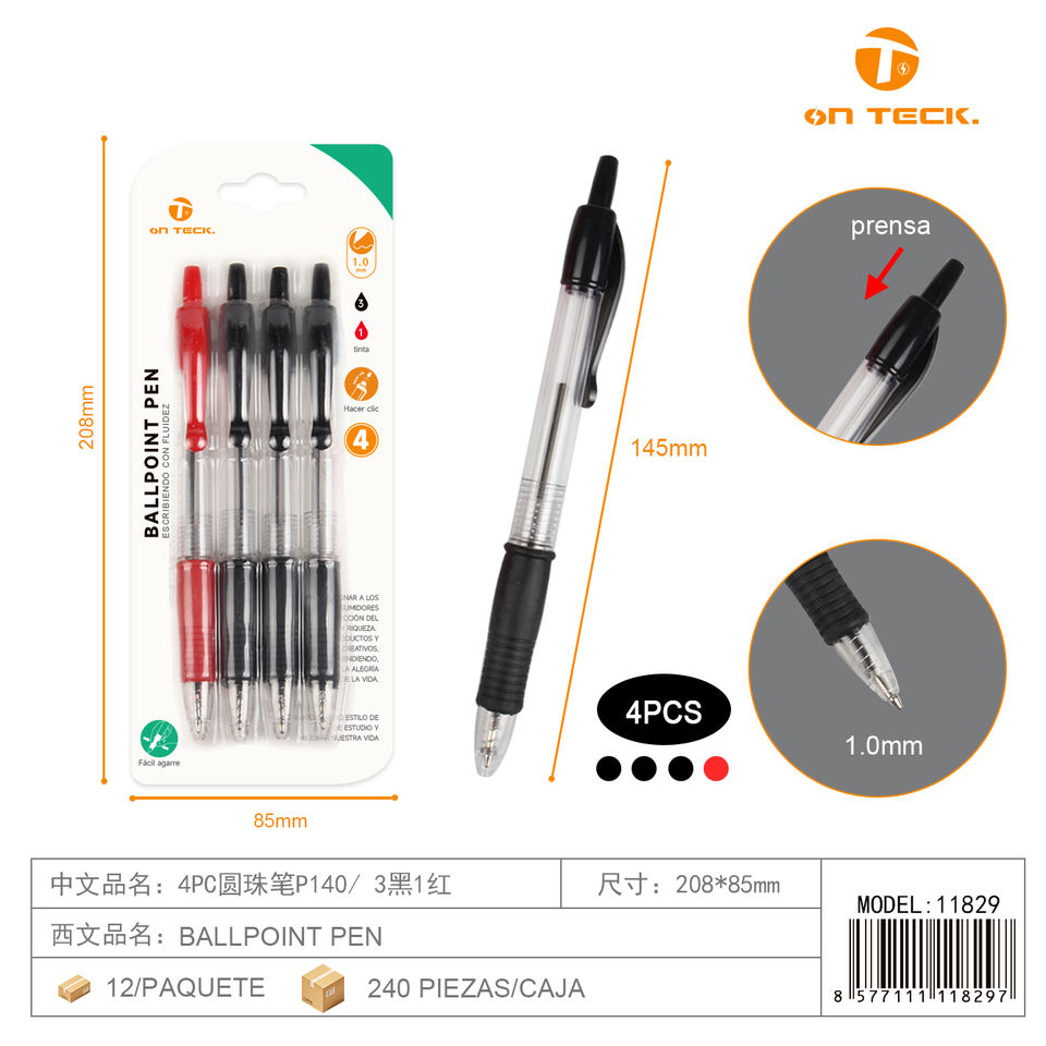 ปากกาลูกลื่น4ชิ้น P140 3สีดำ1สีแดงปากกาลูกลื่นทนทาน4ชิ้น p140 3สีดำ1สีแดงทนทานสำหรับนักเรียนการเขียนน้ำหนักเบา11