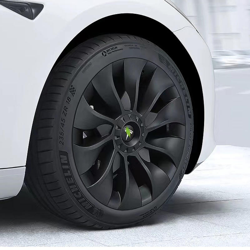 ปลอกหุ้ม4ชิ้นเส้นผ่านศูนย์กลางภายใน18นิ้วฝาครอบ ABS ฝาครอบล้อเทอร์ไบน์ครอบคลุม18กังหันสำหรับเทสลารุ่น3