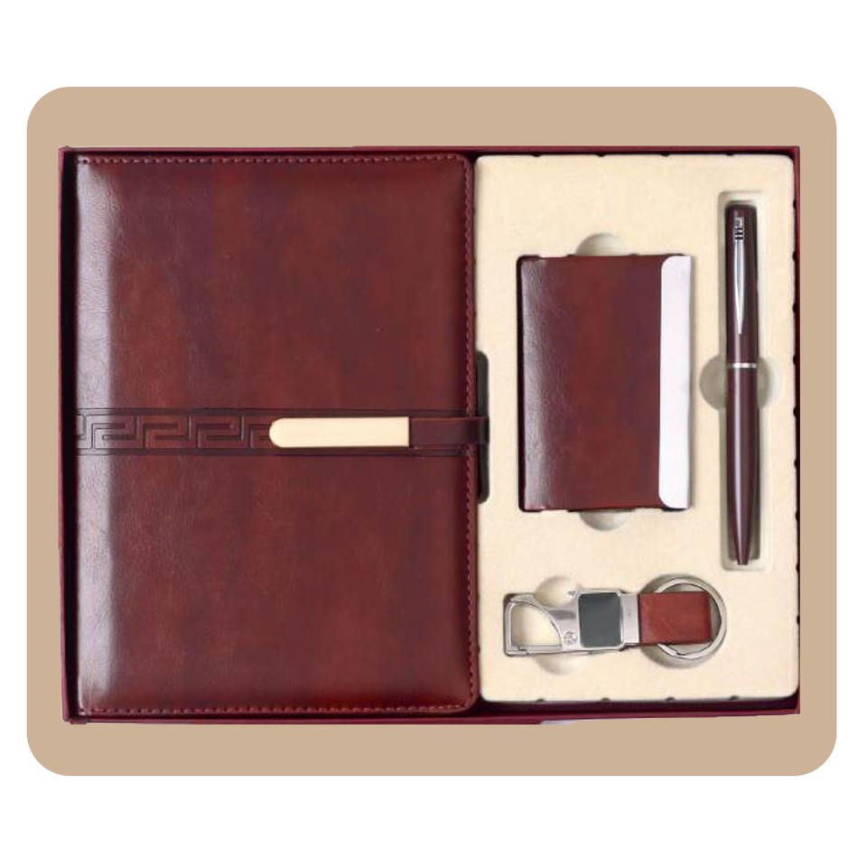 4PCS Business Corporate Gift Set Leather Notebook Pen Keychain Stainless Steel Water Bottle Personalized Embossed Liviya Easter
