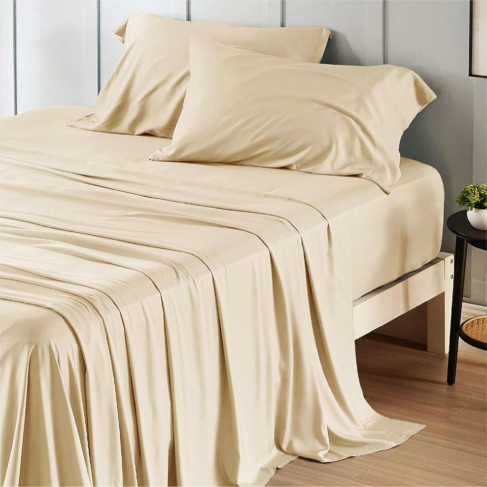 ชุดเตียงไม้ไผ่ระบายความร้อนด้วย300TC 4ชิ้น, ชุดผ้าปูที่นอนแบบระบายอากาศได้กระเป๋าลึกใช้ในบ้านโรงแรม