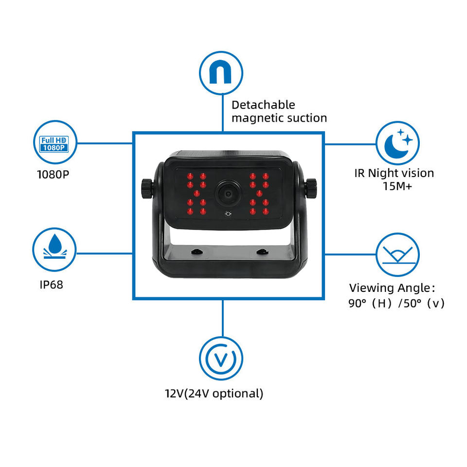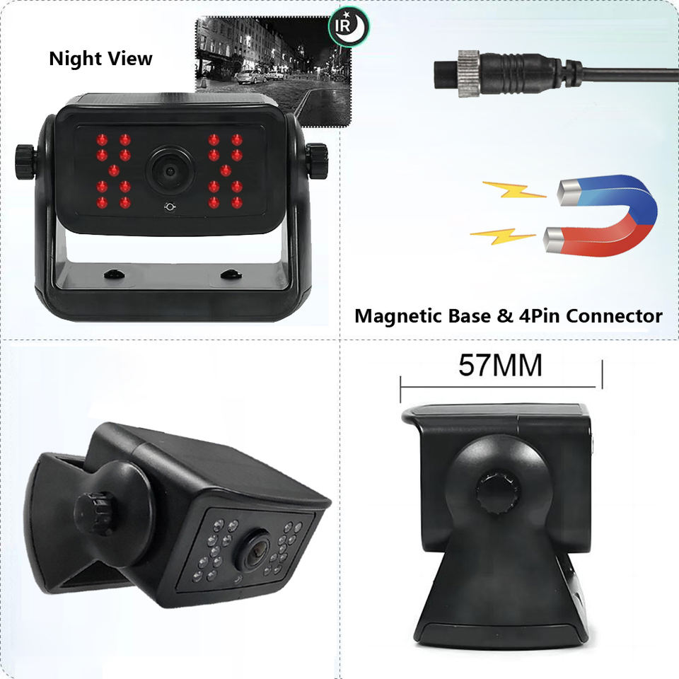 4PIN ที่มีเซ็นเซอร์ AHD 1080P กล้องมองหลังแม่เหล็ก18หลอด LED อินฟราเรดมองเห็นกลางคืนกันน้ำสำหรับรถบรรทุกรถบัสคาราวาน RVs