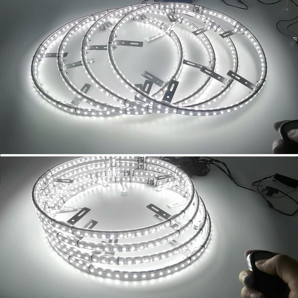 4ชิ้น17in สองด้าน LED สีขาววงแหวนล้อ W/ RF รีโมทคอนโทรลกันน้ำไฟล้อไฟยางสำหรับรถกระบะ