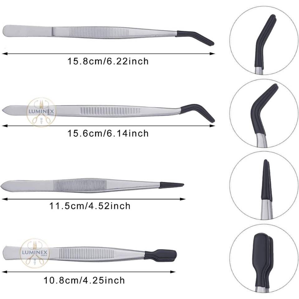 แหนบตกปลาคุณภาพสูง 4 ชิ้น ทำจากสแตนเลส ปลายยาง สำหรับจัดการสายเอ็น ถอดเหยื่อ ใช้ทำ DIY รับทำโลโก้ตามสั่ง สีใดก็ได้