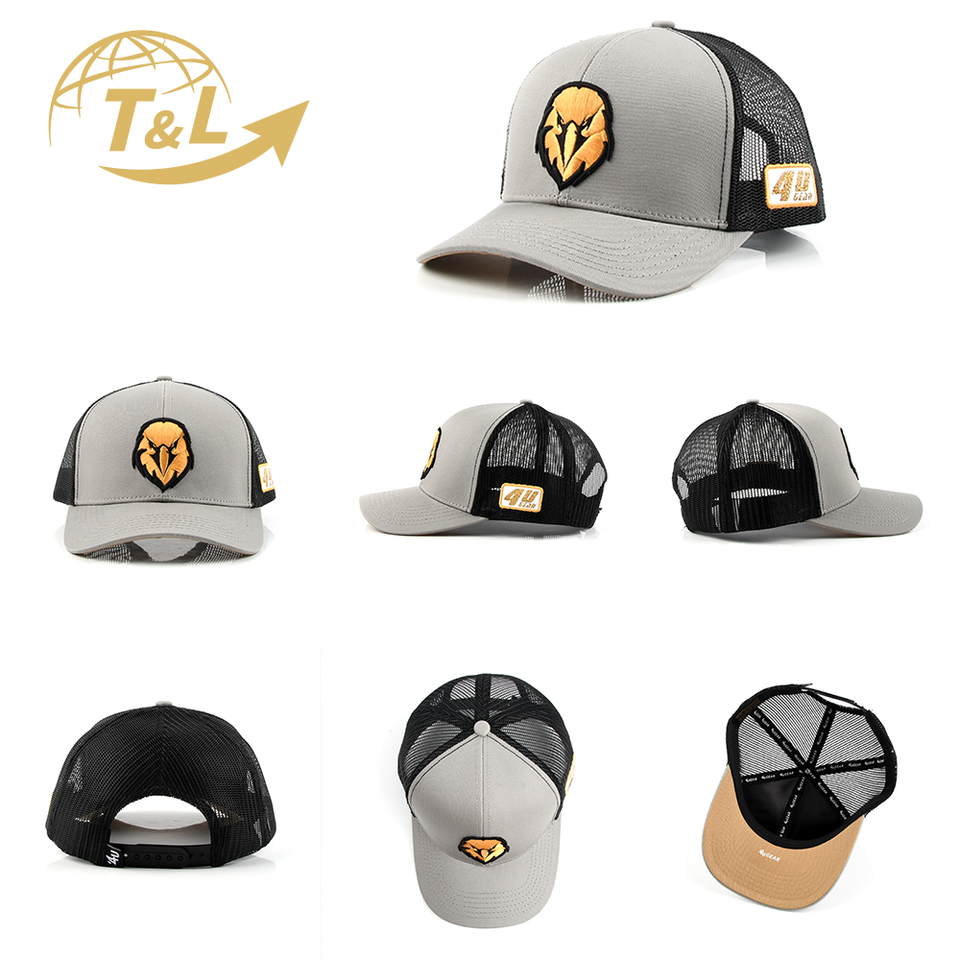 4ugear หมวกแก๊ปตาข่ายผ้าทอลายทแยง6แผงผ้าฝ้าย4U สีทองปักโลโก้ gorras Trucker