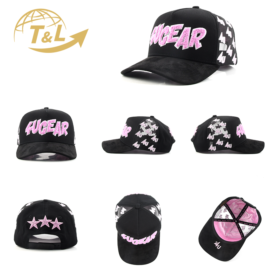 หมวกแก๊ปเบสบอลทรงโค้ง 4UGEAR ขายส่ง สีดำ ปีกหมวกหนังกลับ หมวก Barbas 5 แฉก ทรง A-Frame หมวก Barbas