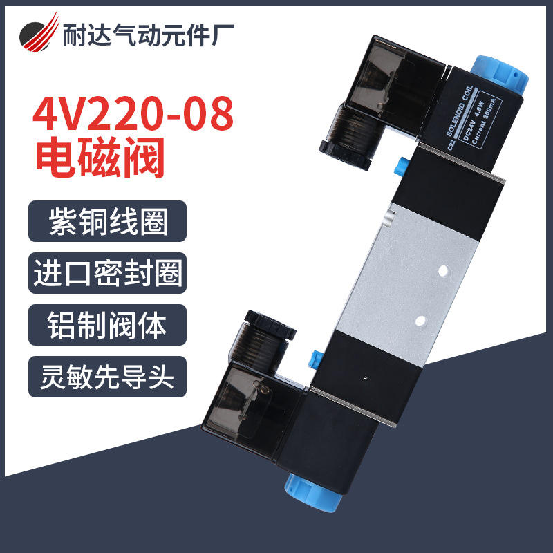 วาล์วควบคุมทิศทางลมแบบนิวเมติก 4V210-08 2 ตำแหน่ง 5 ทาง พร้อมสวิตช์โซลินอยด์ 4V220-08; สำหรับไฟ DC24V/AC220V