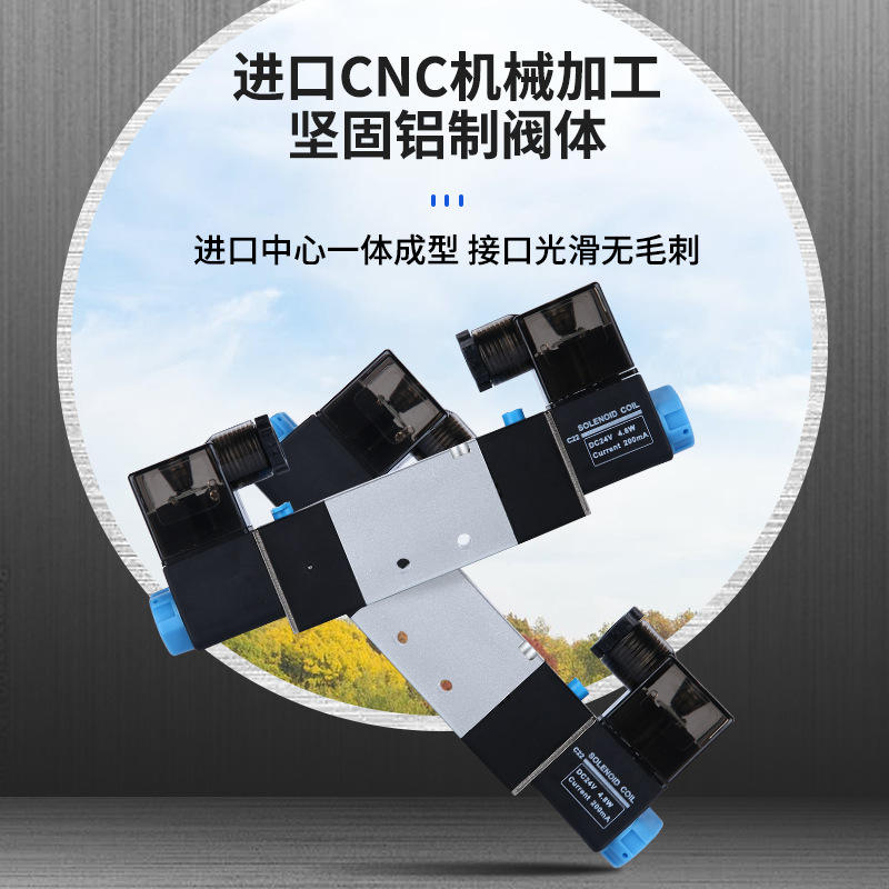 วาล์วโซลินอยด์นิวเมติกแบบคอยล์คู่ 4V220-08 24V แบบกลับด้าน 5 ทาง 2 ตำแหน่ง ควบคุมการไหลของแก๊ส รองรับ OEM ปรับแต่งได้