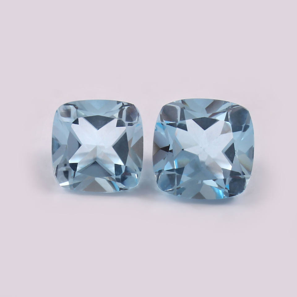 พลอยโทแพซสีฟ้าธรรมชาติขนาด 4x4 มม. รูปทรงคุชชั่น เจียระไนแบบเหลี่ยม คุณภาพเกรด AAA ความแข็ง 6.5-7 ผลิตด้วยมือในอินเดีย ตรวจสอบโดยบุคคลที่สาม