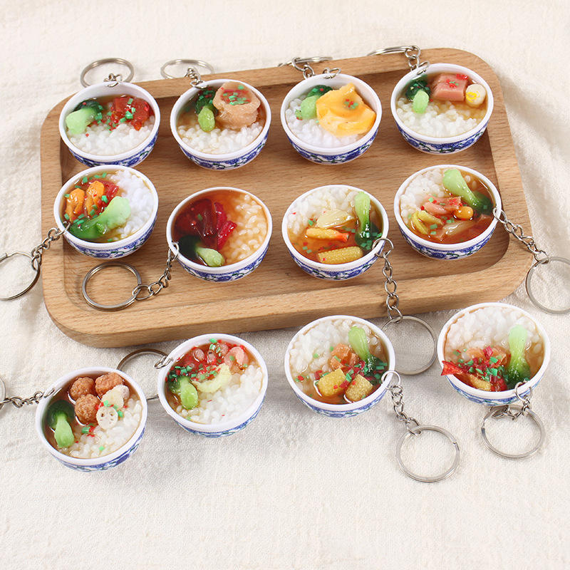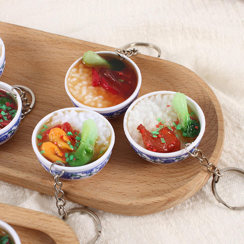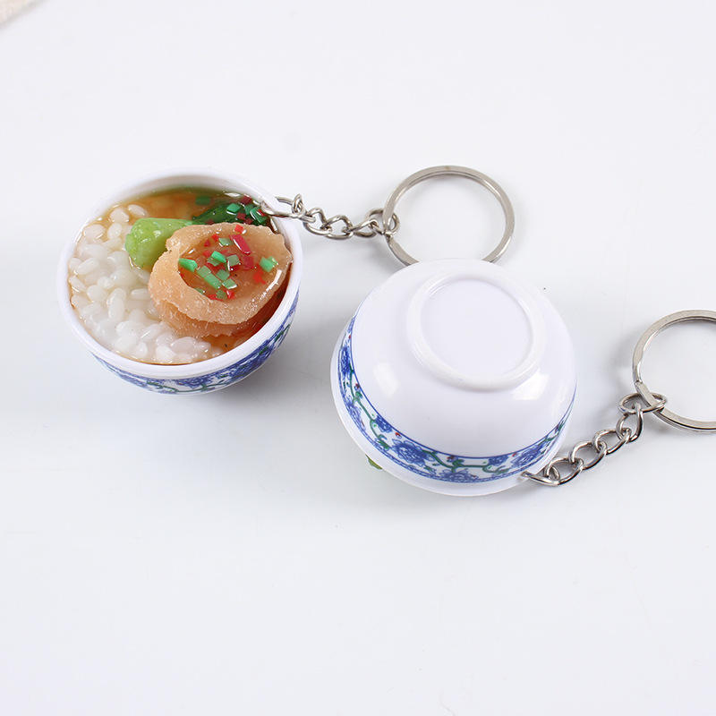 โมเดลชามข้าวจำลองขนาด 4 ซม., พวงกุญแจจานชามลายครามสีน้ำเงินและสีขาว, ของเล่นอาหารจีนจำลองขนาดเล็ก
