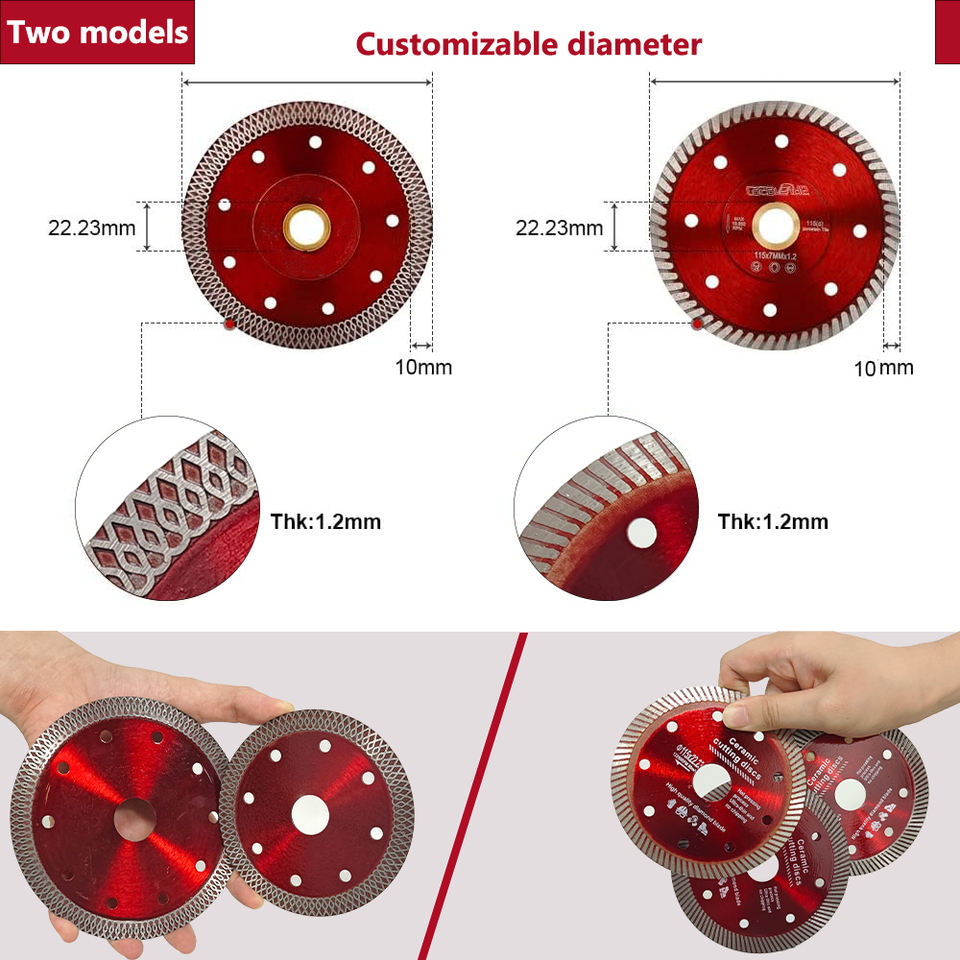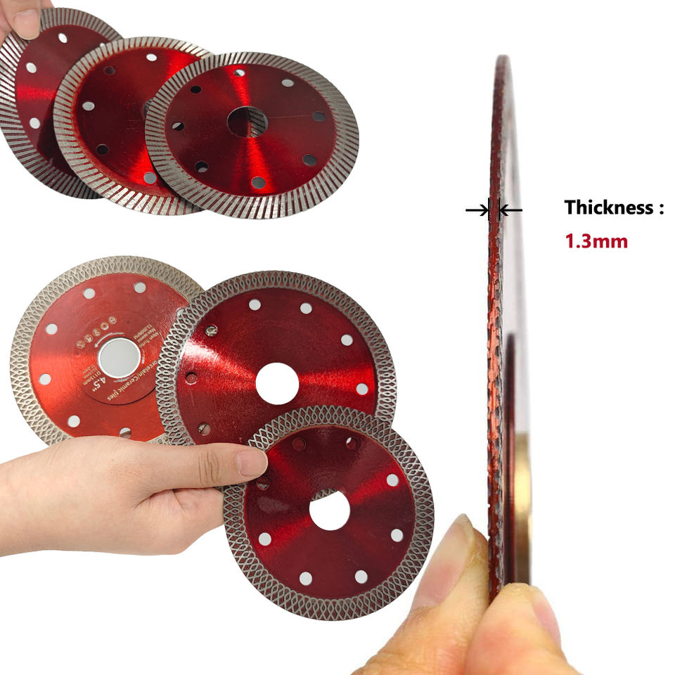 ใบเลื่อยเพชรแบบเทอร์โบบางพิเศษ ขนาด 4 นิ้ว 106 มม. สำหรับงานอุตสาหกรรม ผลิตด้วยวิธีการอัดร้อน รับประกัน 3 ปี สีแดง ทนทาน ไม่เป็นขุย