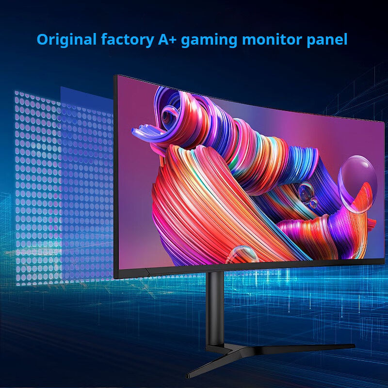จอ LCD 4K ขนาด34นิ้วจอแบบโค้งกว้างพิเศษไม่มีขอบจอภาพเล่นเกมระดับมืออาชีพ4K หน้าจอที่สองสำหรับแล็ปท็อป