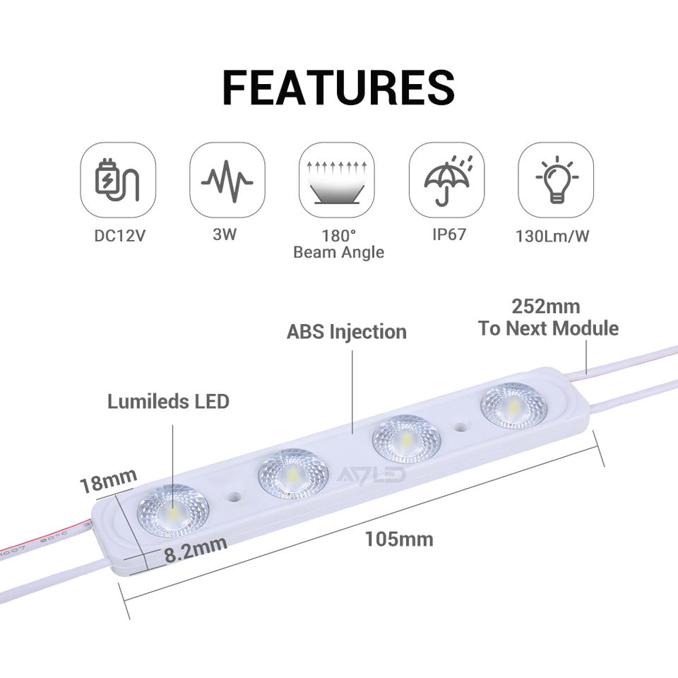125lm/w 3W 4 LEDS Waterproof IP67 Led Module 12V