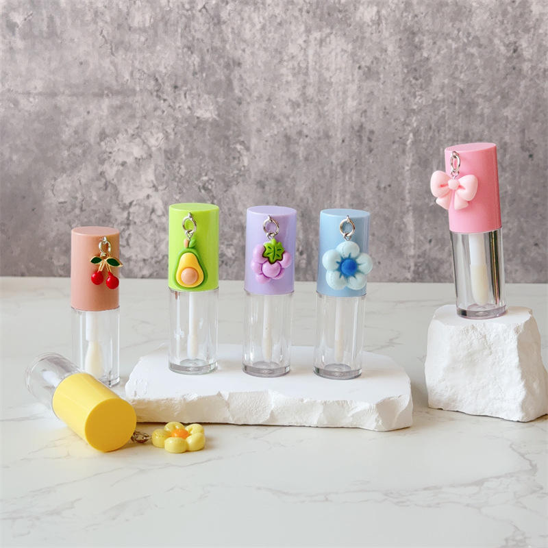 ลิปกลอสใสขนาด4มล. ลิปมันบลัชออนลิปแบบหลอดบรรจุภัณฑ์พร้อมจี้ด้านข้างบรรจุภัณฑ์เครื่องสำอางปรับแต่งได้