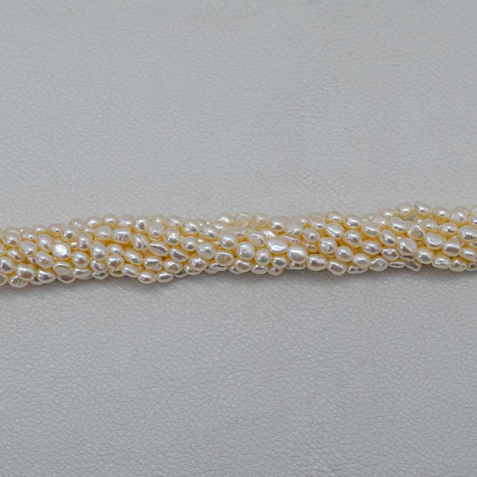 ไข่มุกน้ำจืดธรรมชาติขนาด 4 มม. 5 มม. รูปทรงไม่สม่ำเสมอ ลูกปัดหลวมสีครีม สร้อยคอไข่มุก ผลิตภัณฑ์ทำมือจากซัพพลายเออร์อินเดีย