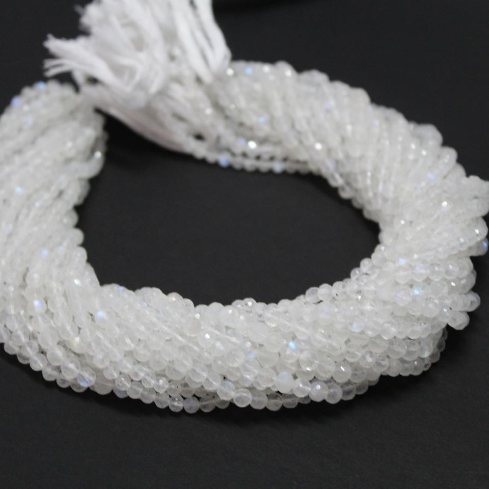 ธรรมชาติ Rainbow Moonstone สีน้ำเงิน Faceted สร้อยข้อมือลูกพลอยลูกปัด